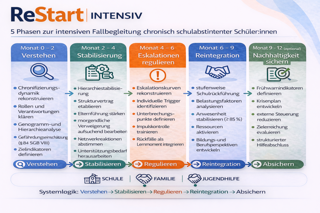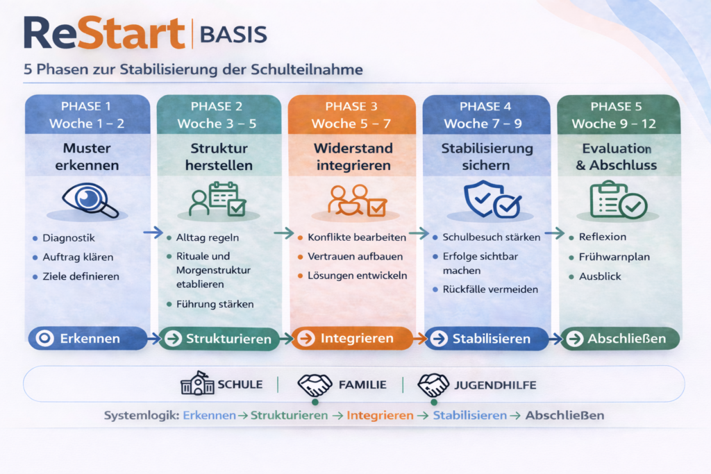 ist ein systemisches Interventionsmodell zur Stabilisierung von Schul-teilnahme. Die Unterstützung erfolgt in drei Stufen – je nach Dynamik und Bedarf.