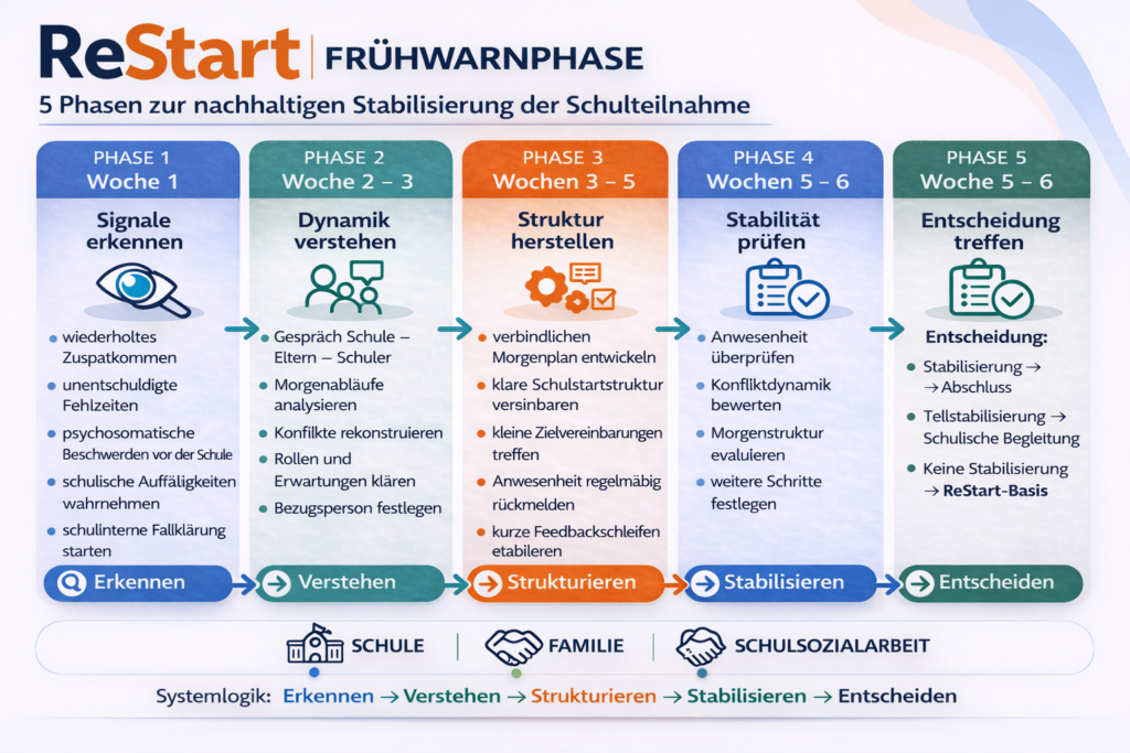 Frühe Stabilisierung bei ersten Auffälligkeiten. Ziel ist es, erste Anzeichen von Schulvermeidung frühzeitig zu erkennen und zu stabilisieren.